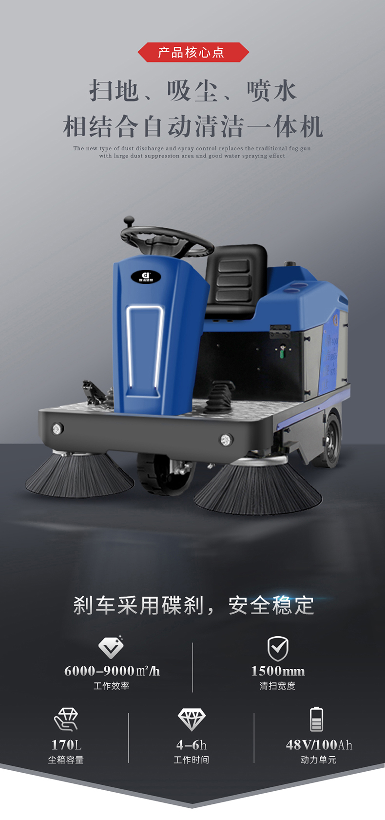 適用場所:適用于柏油路、水泥路、大理石、方磚、地磚等硬質地面,能高效的完成物業保潔、工廠車間、市政道路、醫院社區、校園景區、廣場公園、粉塵車間、新農村街道等公共場所地面的日常清潔工作