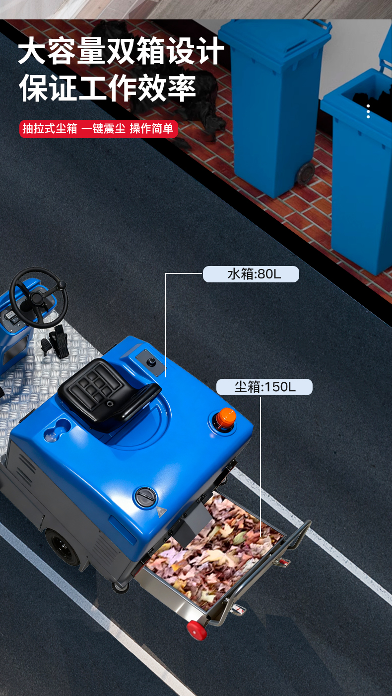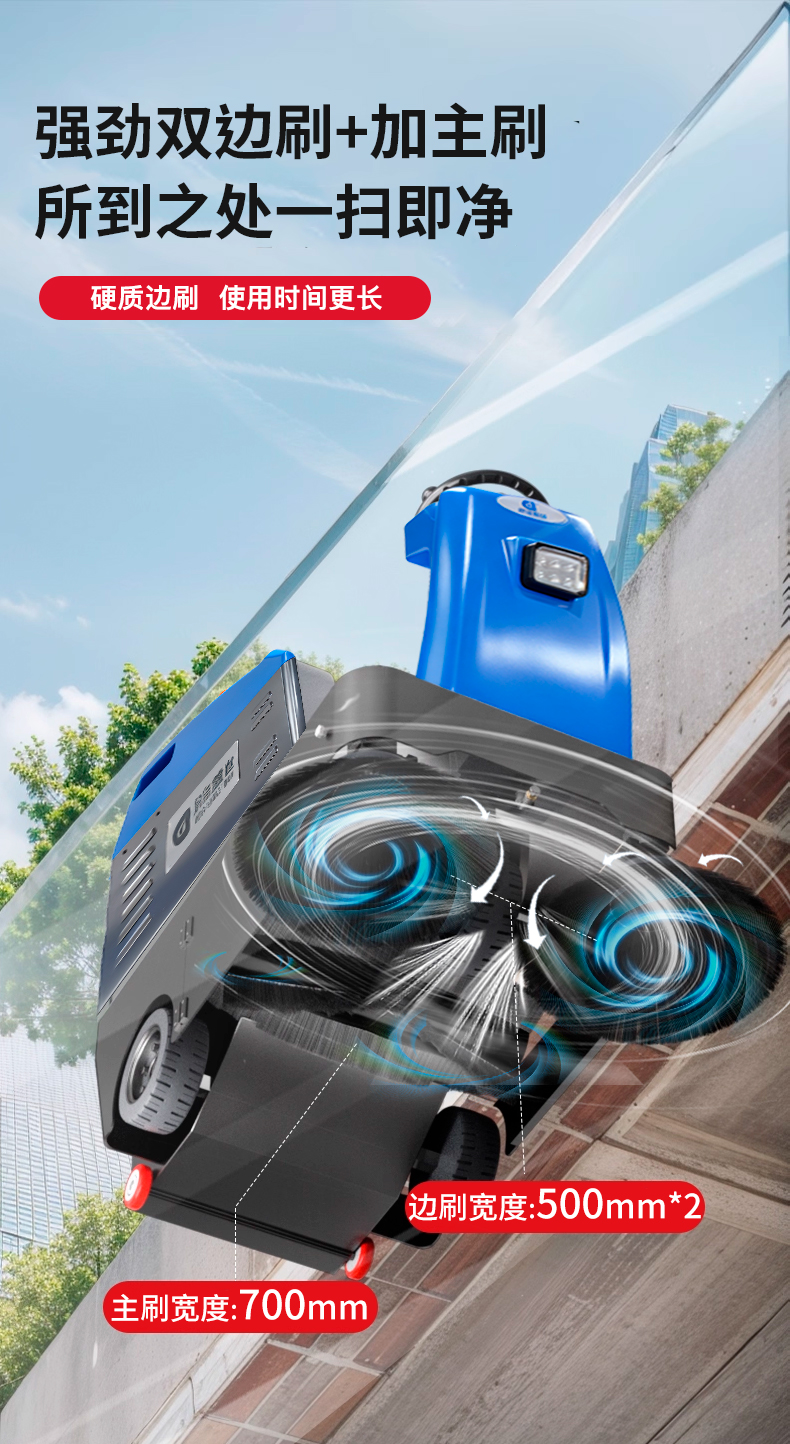 外圍場景(如工廠園區、公園、車站外圍)通常面積大(3000-10000㎡以上)、地面多為水泥 瀝青,需應對落葉、石子、粉塵等垃圾。因此,駕駛