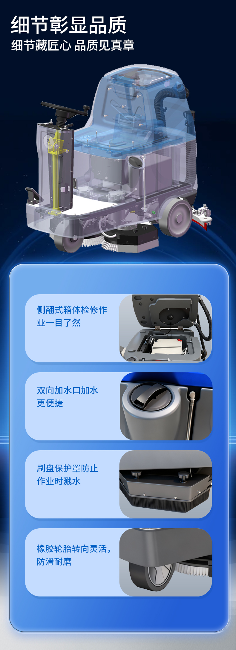外圍場景(如工廠園區、公園、車站外圍)通常面積大(3000-10000㎡以上)、地面多為水泥 瀝青,需應對落葉、石子、粉塵等垃圾。因此,駕駛