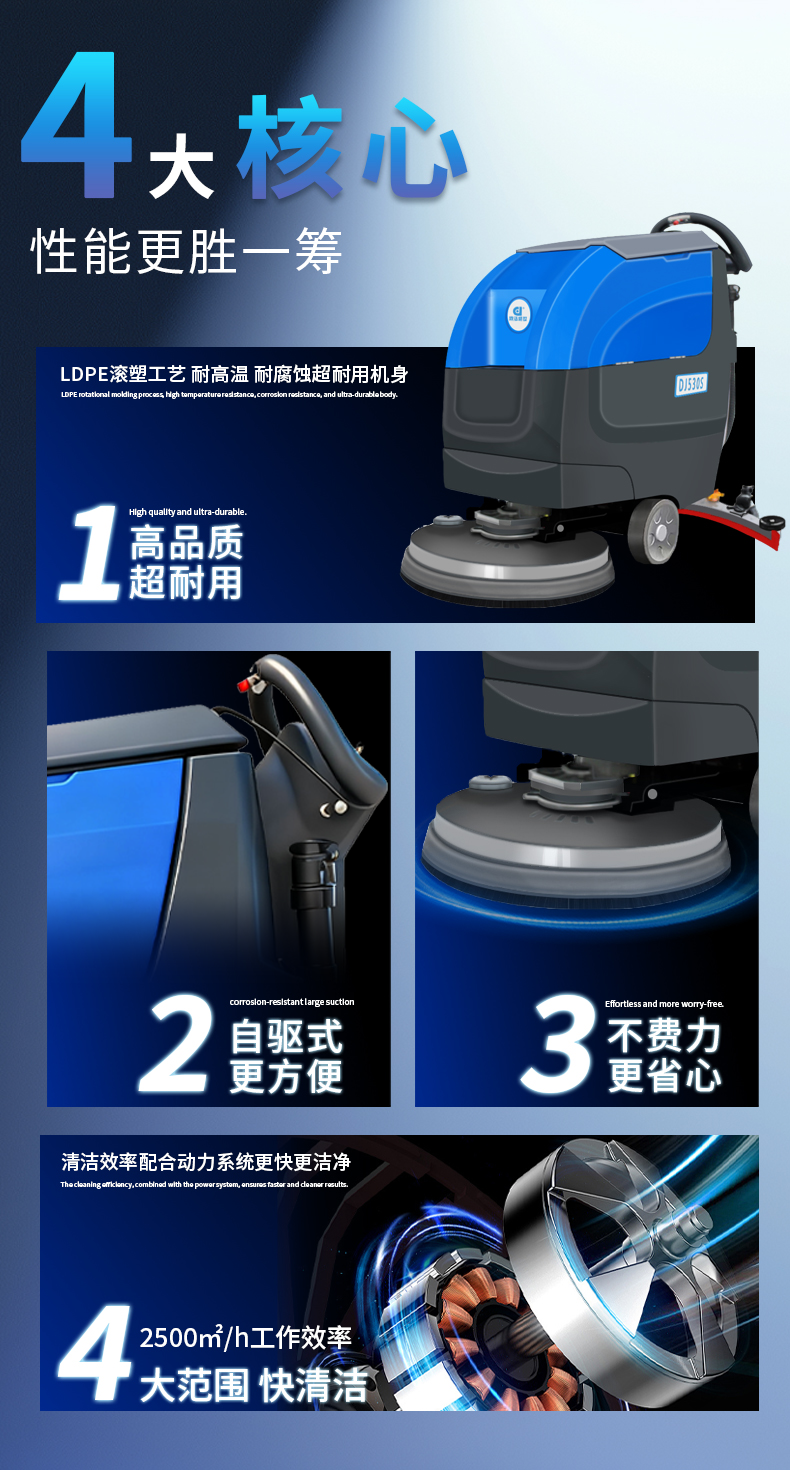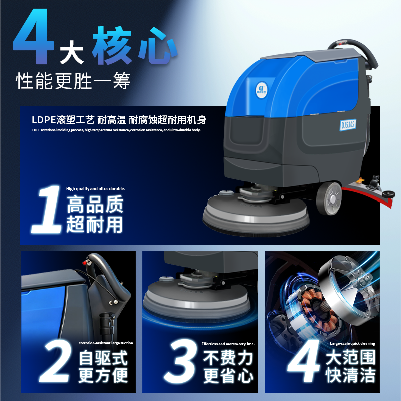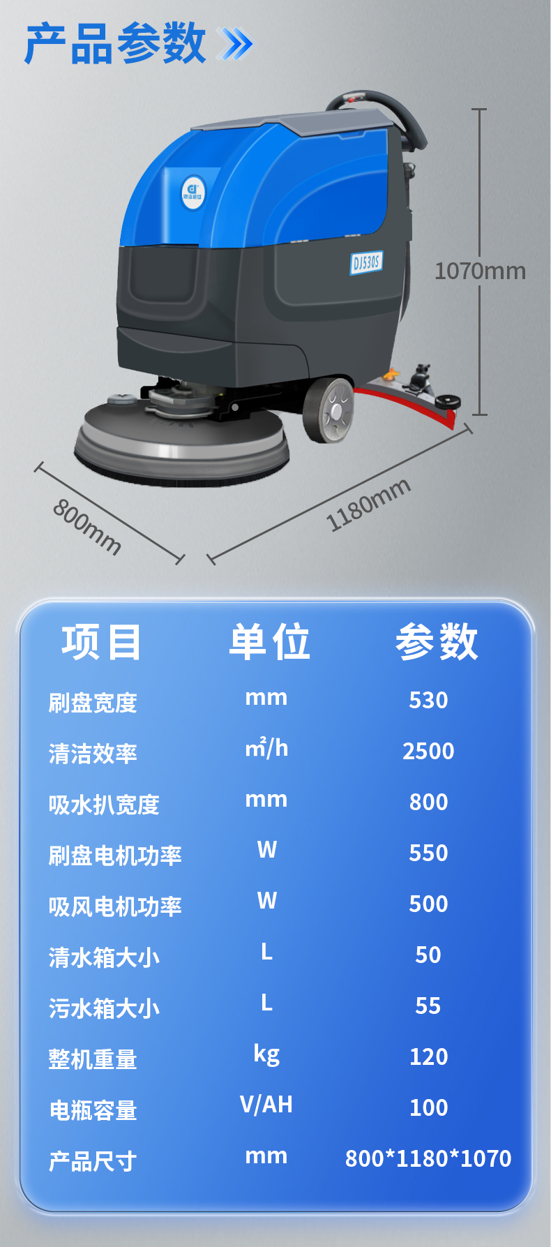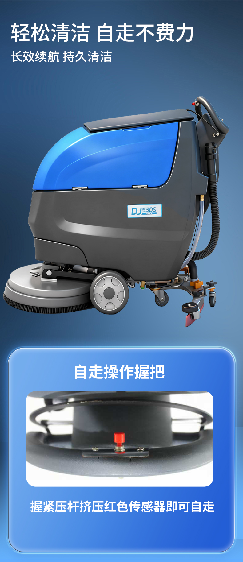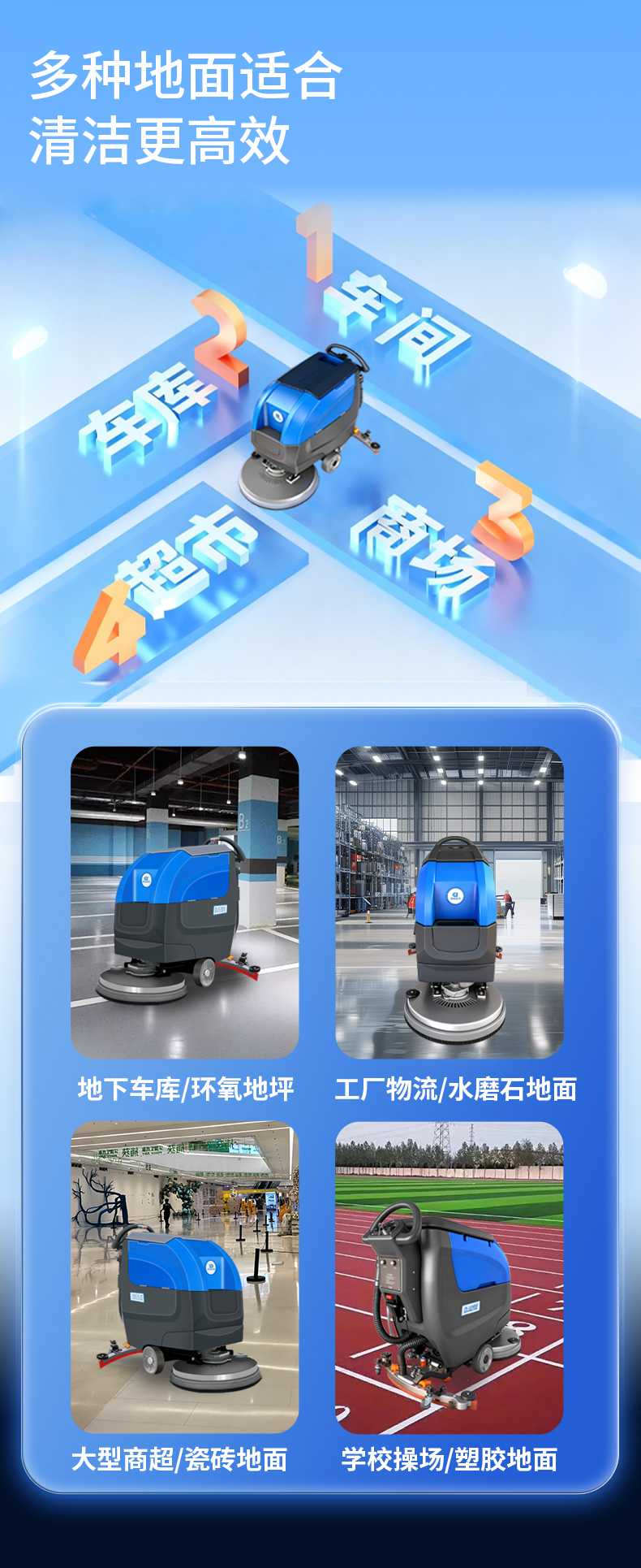 駕駛式洗地機(jī)怎么選擇?1 清潔效率:優(yōu)先選擇每小時(shí)清潔面積≥2000㎡、續(xù)航≥4小時(shí)的機(jī)型,如鼎潔盛世DJ530M(2700㎡ h,續(xù)航5小時(shí))。