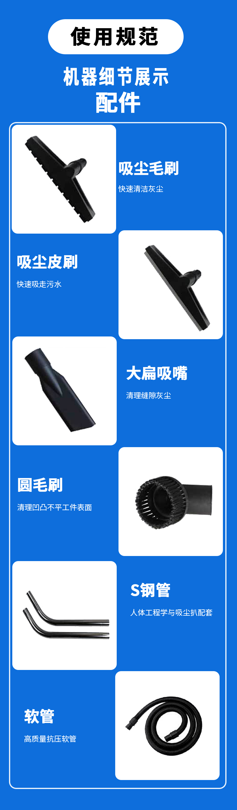 適用場所:適用于酒店賓館、KTV、商場等場所相對干凈的區域吸塵吸水的清潔