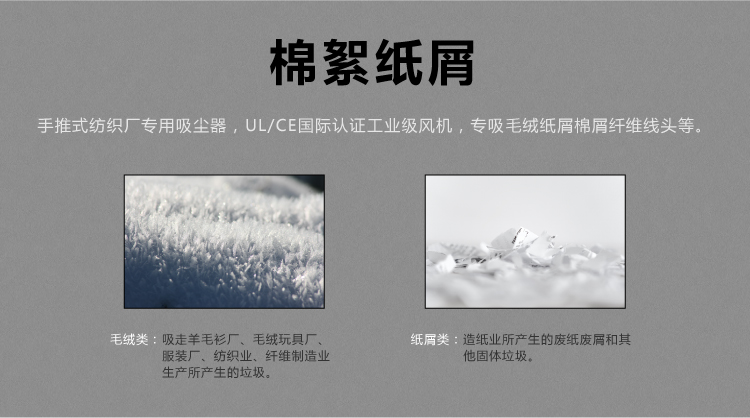紡織廢料,棉絮,毛屑粉塵等都能吸